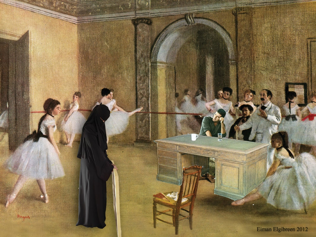 سلسلة " حجاب" للفنانة الجبرين، عن تنميط المرأة السعوديّة المحجبة والمنقبة على ورق وخشب اسكندنافي.