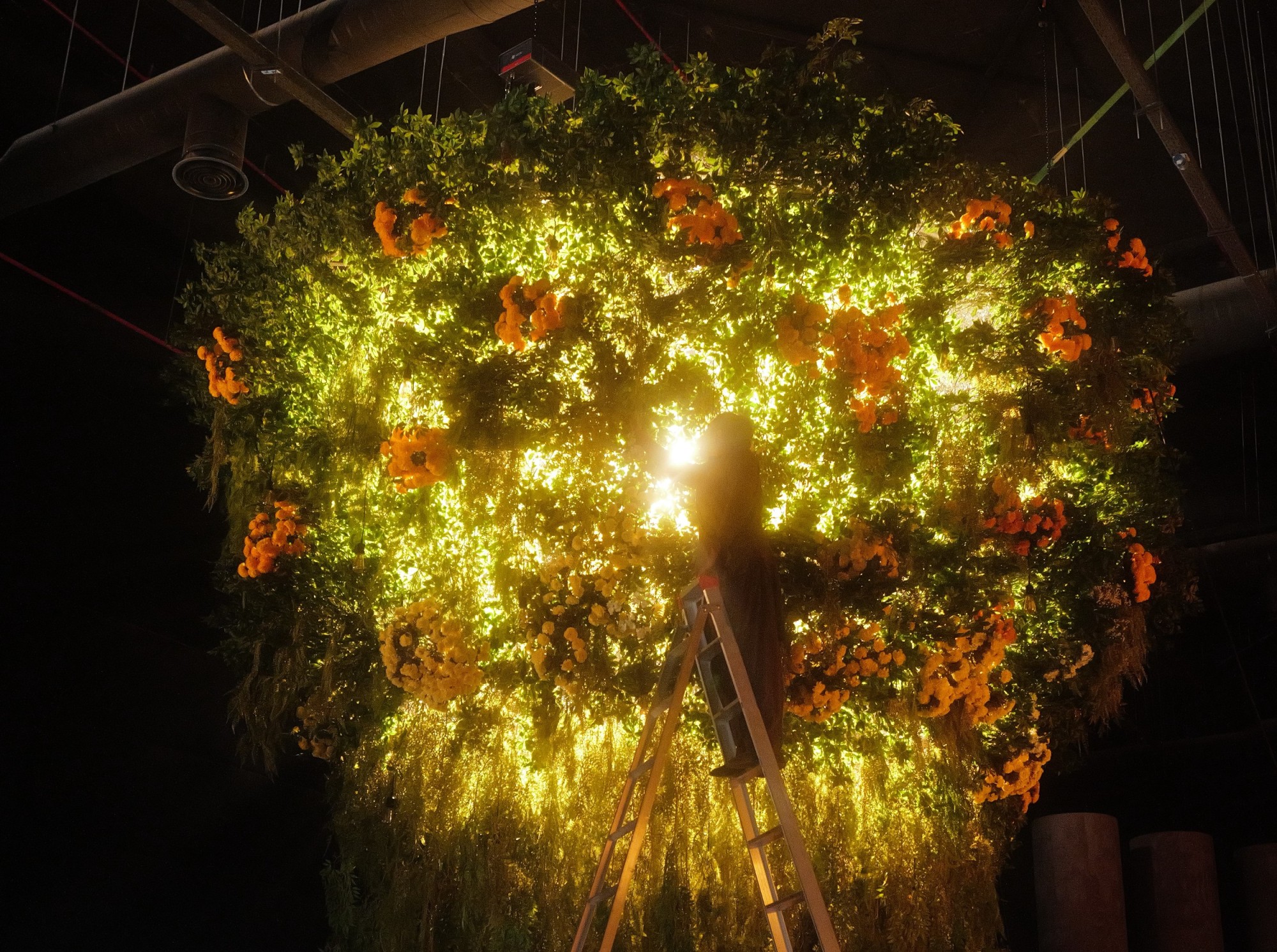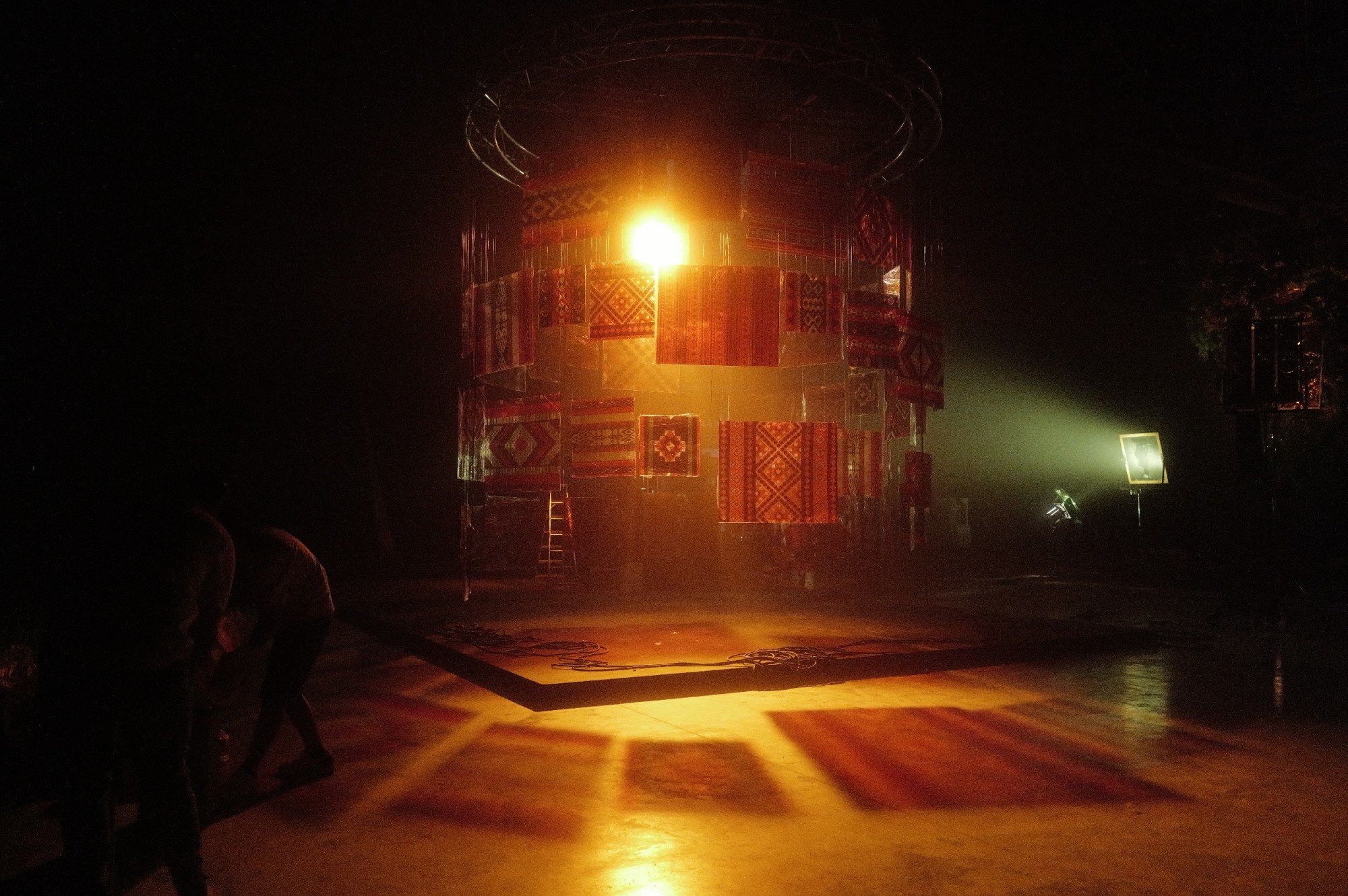 ويظهرُ "السدو" بوصفِه واحدًا من فنونِ الحِياكةِ التقليديّةِ في المملكةِ، يعكسُ صورةً عنِ الصبرِ في الغزْلِ والفنِّ في النقوشِ، ينتشرُ من وسطِ المملكةِ إلى شَمالِها، ولهُ أشكالٌ وأنماطٌ متعدِّدةٌ وبديعةٌ. وفي العملِ يتسللُ النورُ بين قِطعِ السَّدوِ الملونةِ بإتقانٍ، فيما تلمعُ رسوماتُه الهندسيةُ؛ لِتُضفيَ جمالًا آخرَ على المَشاهِد.