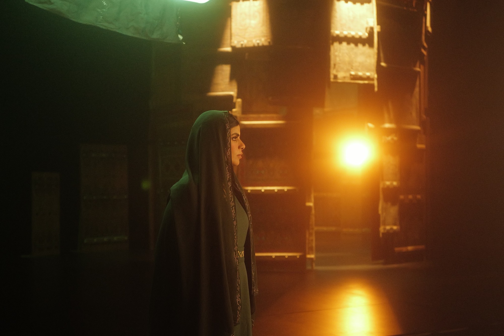 ومنَ المنطقةِ الشرقيَّةِ للمملكةِ، التي طالما ذَرعتْ القواربُ الشراعيَّةُ سواحلَها، وغاصَ الصَّيادونَ في أعماقِها، تظهرُ في العملِ من خلالِ "البشوت الحساوية"، بِقَصَّتِها العتيقةِ، عن إبداعِ الحِرفيينَ السعوديينَ، وصَنعتِهم العصيّةِ على الاندثارِ، تظهرُ البشوتُ كأشرعةٍ منتصبةٍ باعتزازٍ، وكأنَّ الوطنَ يمخُرُ عُبابَ الوقتِ باتجاهِ آمالِه الكبيرةِ، ونهضتهِ الواعدة.