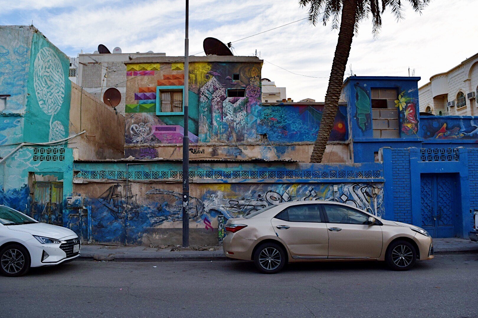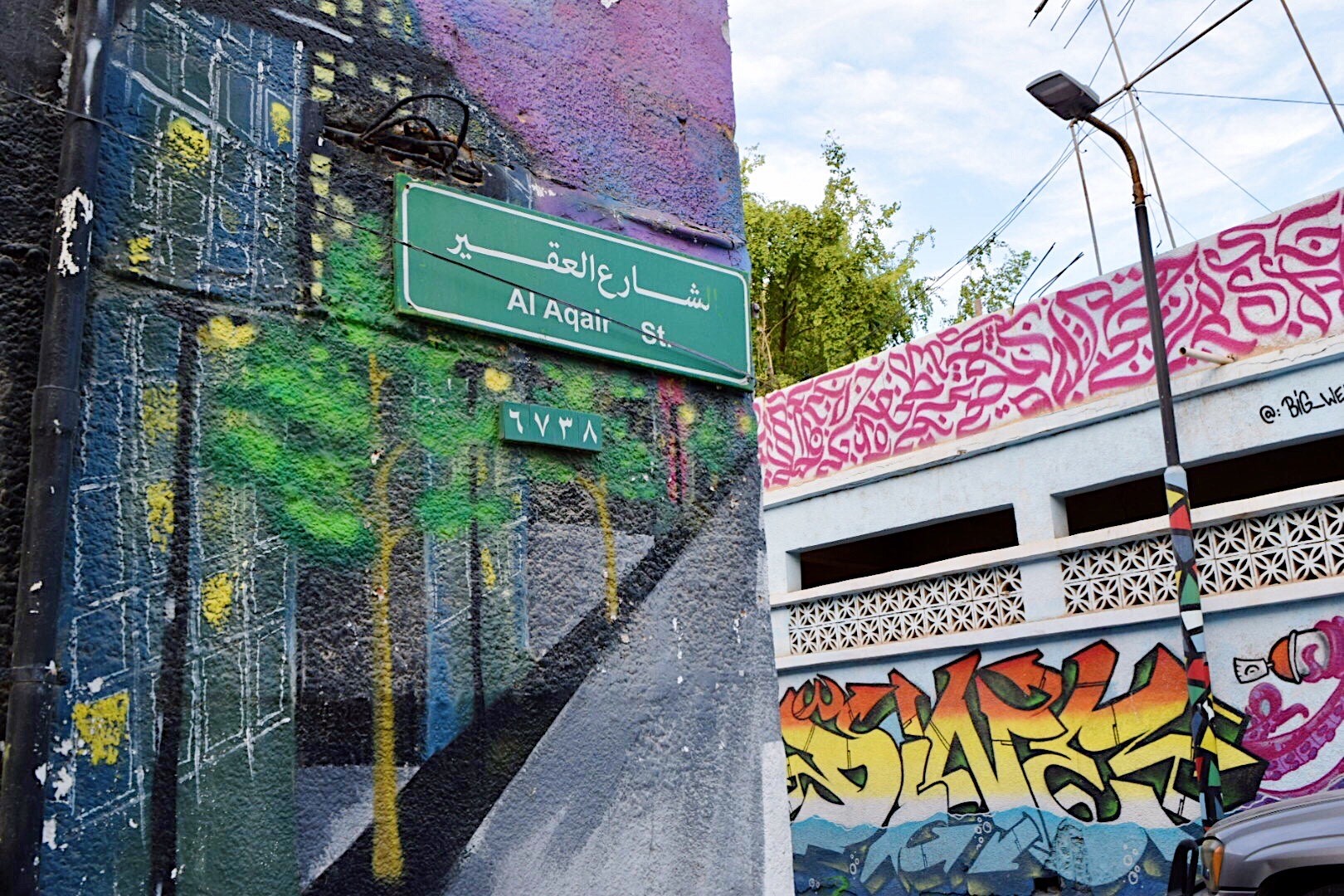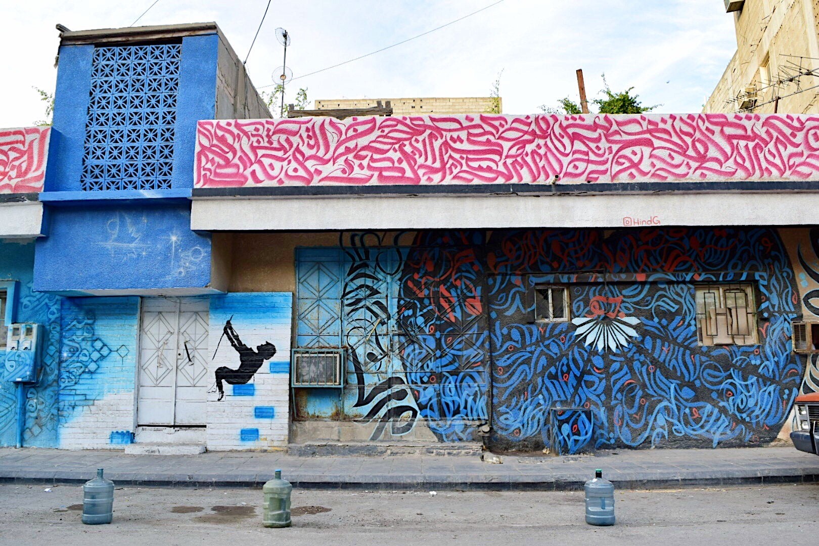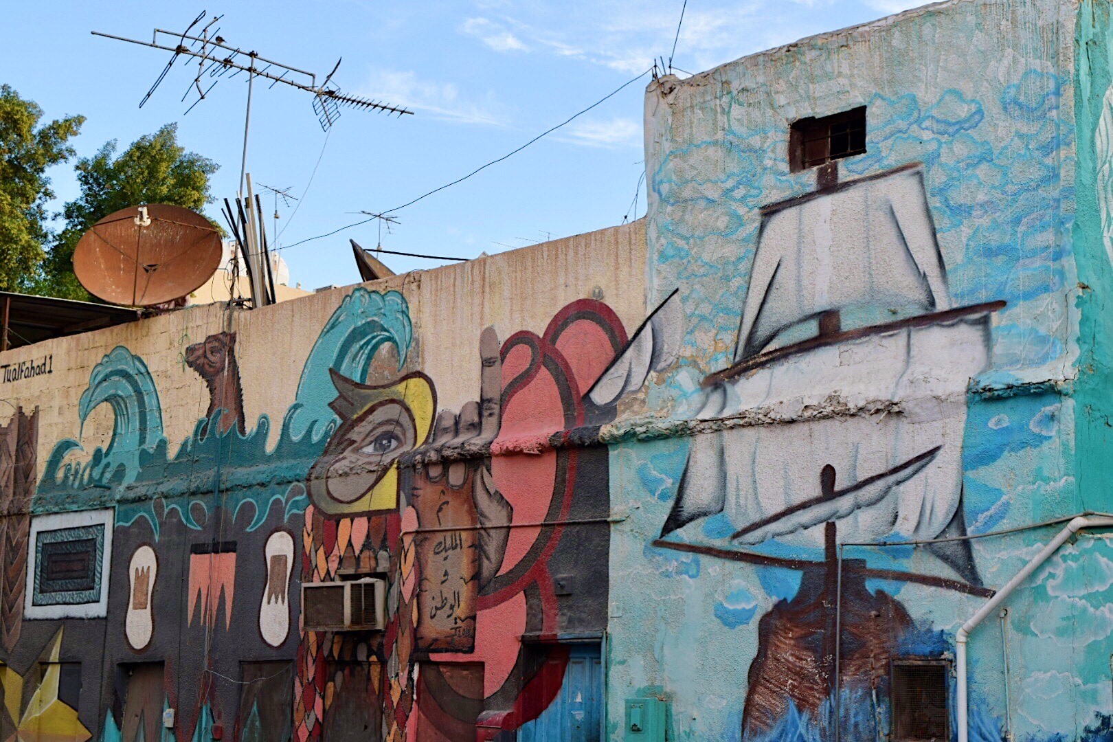 On the corner of Al Aqair Street, a burst of color revolutionizes the once-barren walls. As Saudi Arabia’s first official graffiti project in 2018, the old Khobar neighborhood transformed into a series of spirited murals. The street is normal compared to other Khobar districts, with the neighborhood black cat dashing across cars and chasing whatever insect it finds. The juxtaposed look of the neighborhood captivates any passer-by: the modern graffiti art plasters old-fashioned AC’s, while vibrant blues, yellows, and greens paint the antique window stalls and expressive paintings cover the doors. The Al Aqair graffiti project effortlessly mixes what once was in Saudi Arabia to what will be—turning the blank antique canvas into a vivid youthful realm of creativity.