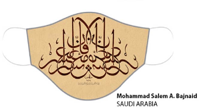 Among the online UNESCO exhibition, UNESCO searched for an artwork that presented hope, and they found it in the work of a talented Saudi artist and calligrapher, Mohammed Salem Ba-jnaid. He had used his skill to create elegant Arabic calligraphy. He uplifts the spirit of Holy Quranic verses with unique Arabic calligraphy. His painting of the Ka'aba door was sent to the United Nations, where it hangs at the UN office in New York. Sadly, Mr. Bajnaid had passed away on October 13, 2019. Still, to celebrate his work, UNESCO chose his Arabic calligraphy as a design for a face mask from Saudi Arabia