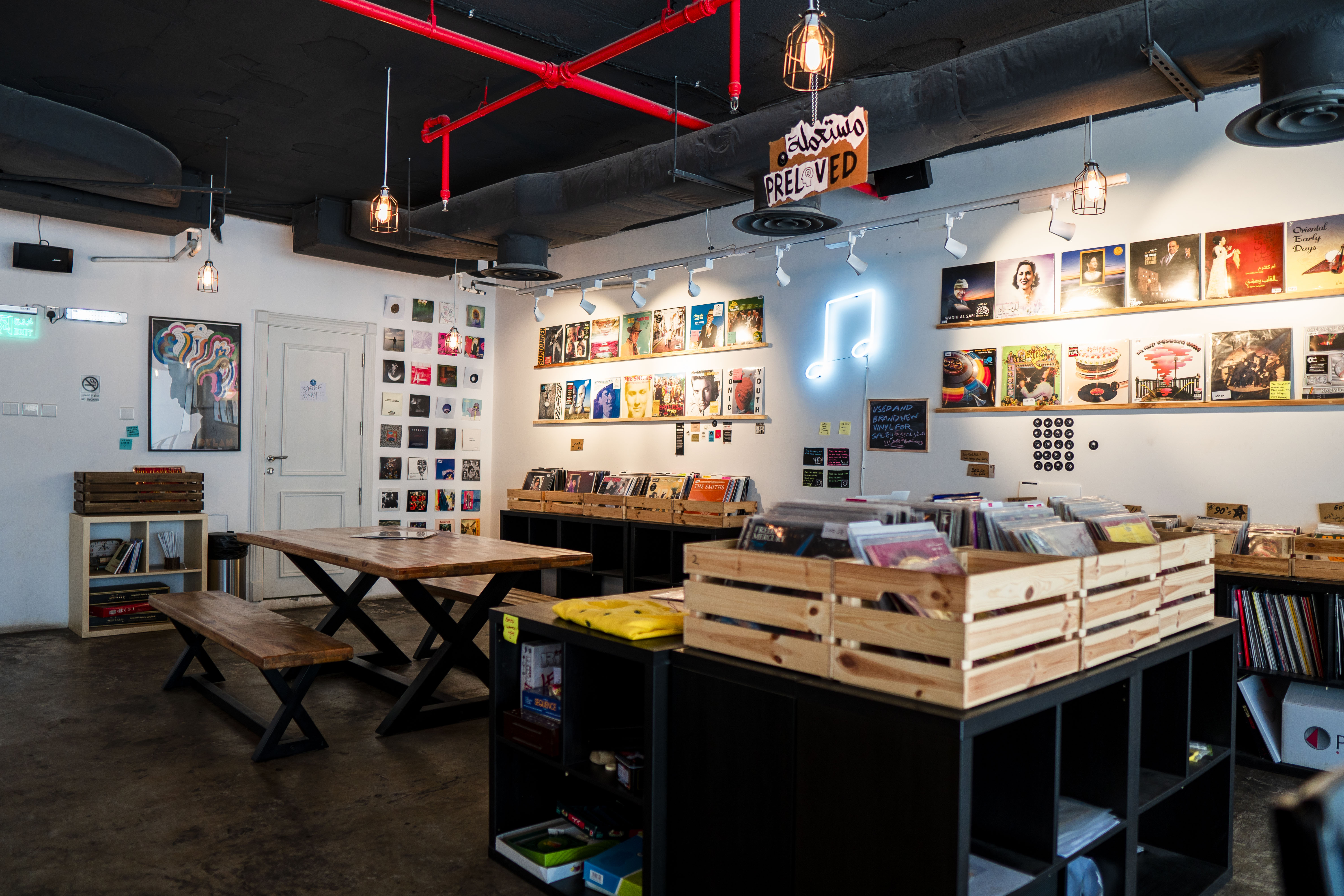 The idea started when we wanted to open a record store that sells vinyl music records, but after initial market research, we came up with the idea of including a coffee shop and an art space, so that the store would have different advantages that all work together. Through the theme we tried establishing nostalgia with the decoration and atmosphere… people mostly think of vintage vibes when it comes to vinyl records, so we tried to give that impression when people visited us.