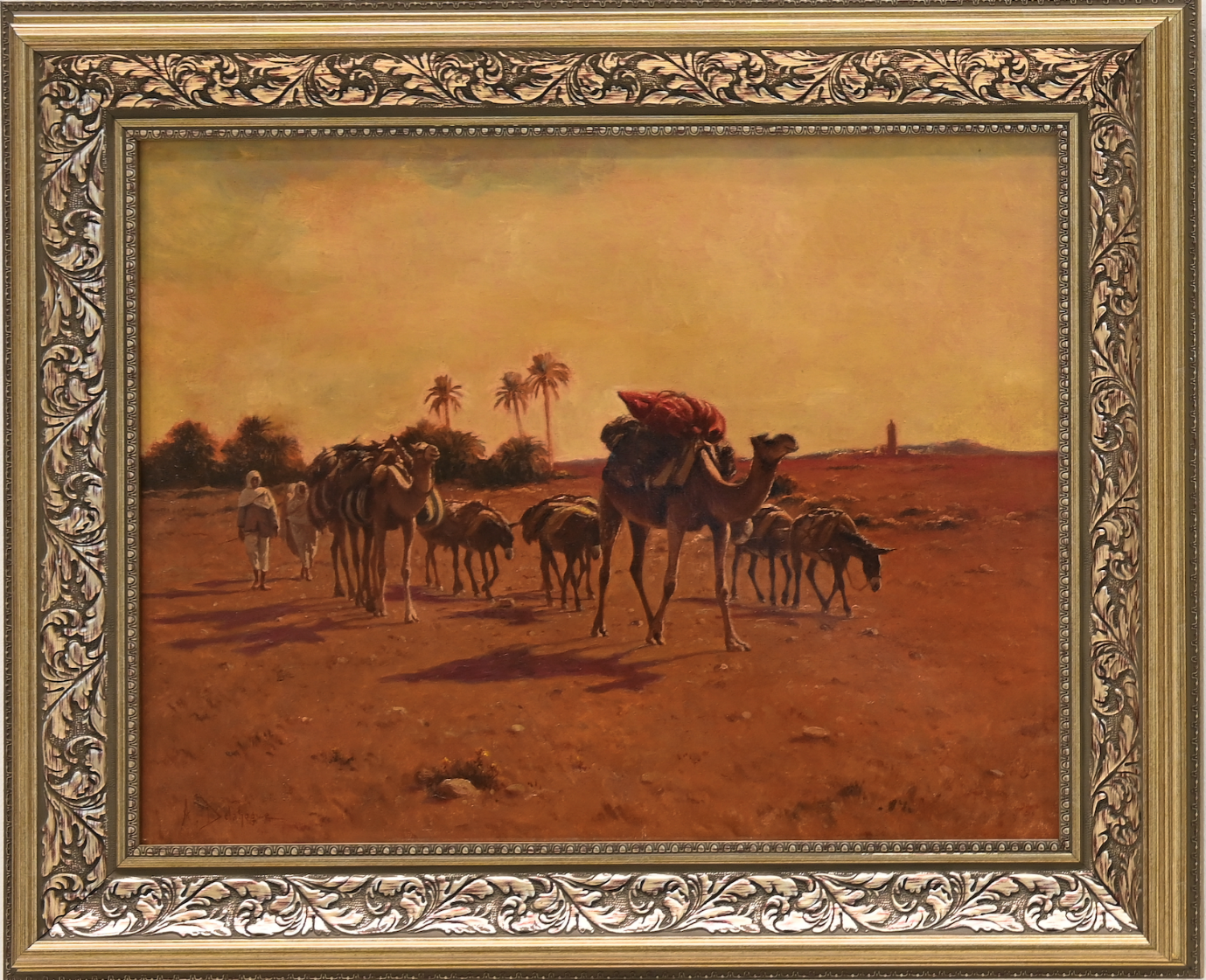 Alexis Auguste DELAHOGUE, The Caravan in the Sunset, 1906, Oil on canvas, Layan Collection
