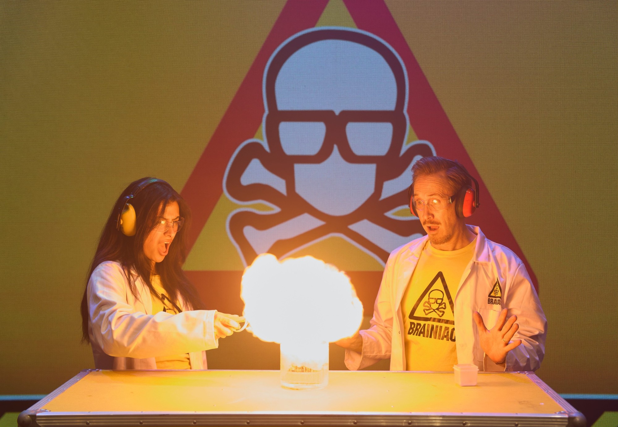 Brainiac offers a one-of-a-kind scientific experience that blends entertainment and interaction, inspired by the famous TV show that turned science into a fun adventure. Through live demonstrations, scientific concepts become exciting experiments performed right before your eyes in an engaging and dynamic way.