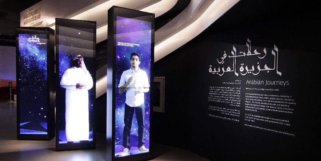 With an immersive and interactive gallery through screen and sound effects, the multimedia infused Rehlaat Gallery is dedicated to showcase the geography of the Arabian Peninsula throughout its history, as well as its relationship with people through time.
